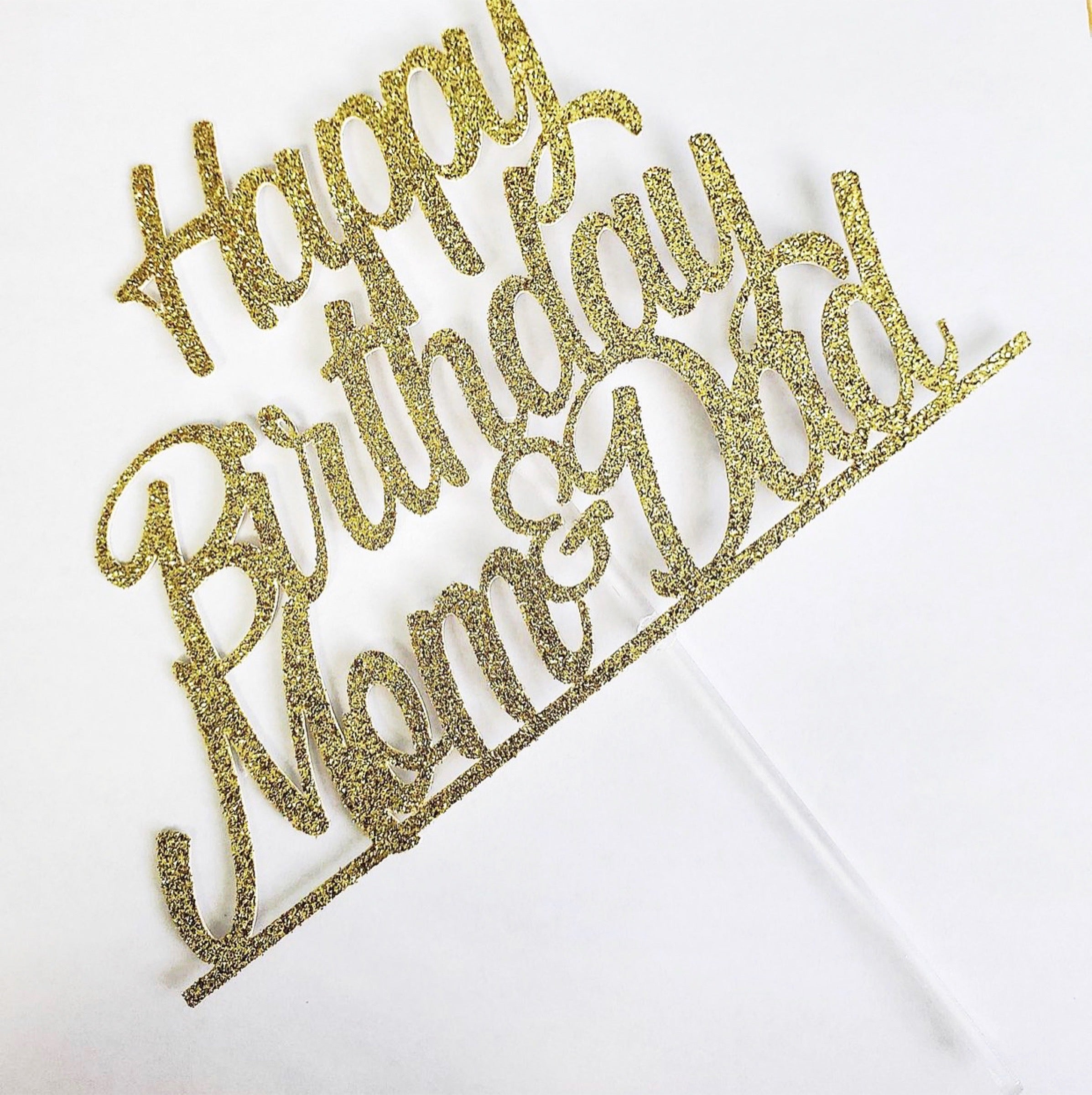 New Happy Birthday Mommy Daddy Acrylic Cake Topper Gold Mirror